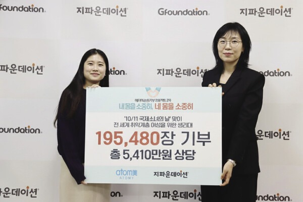 국내외 취약계층에게 생리대 19만 장을 기부한 애터미