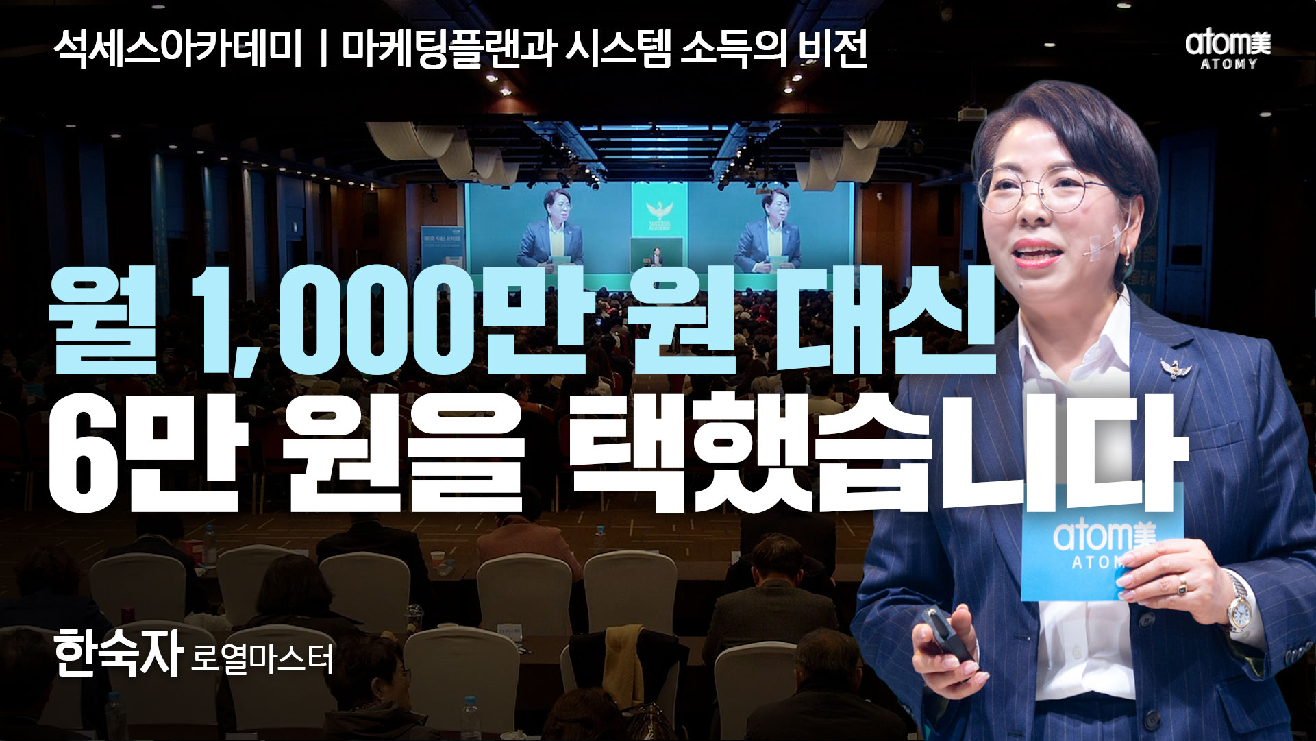천만 원 대신 6만 원을 택했습니다 142세 시대, 준비되셨습니까? 자녀에게 가난을 물려주지 않는 시스템 소득 집 세 채를 날리고 월 400만 원의 이자를 내며 '월천녀'로 불렸던 보험 설계사 시절. 타 네트워크 마케팅에서 아픔을 겪었던 한숙자 로열마스터가 애터미를 선택한 이유는 무엇일까요?  월 천만 원의 수입을 내려놓고 6만 원의 시스템 소득으로 시작해, 연봉 2억 이상의 로열 리더스 클럽에 입성하기까지! 진입비와 월간 유지비가 없는 애터미 마케팅플랜의 특징을 확인해 보세요. [영상 핵심 요약] 0