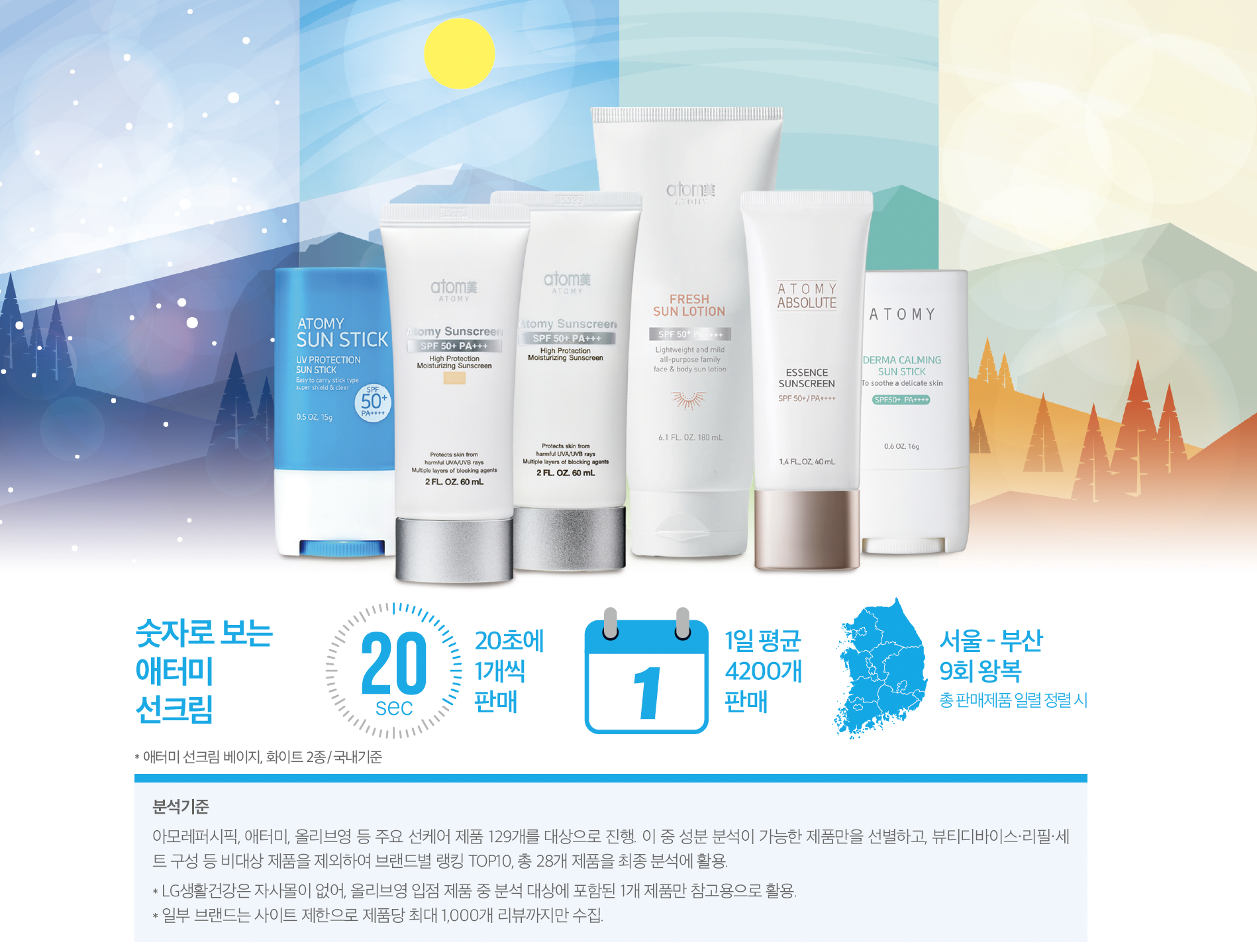 2009년 첫 출시 이후, 애터미 선크림은1) 국내에서만 20초마다 한 개씩 판매되며 지금 이 순간에도 누군가의 피부를 지키고 있다.