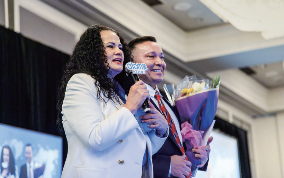김지선 세일즈마스터, 케이 박 다이아몬드마스터, 이스라엘 말도나도 주니어 샤론로즈마스터, 그리고 이스라엘&소니아 말도나도 스타마스터가 승급식 무대에 서서 참석자들의 축하를 받았다. 소니아 & 이스라엘 말도나도 스타마스터 부부는 “성공을 결정짓는 단 하나의 조건은 결단력”이라며 “망설임은 누구에게나 있지만 결단하는 순간 모든 것이 달라진다.”라는 소감을 전했다.