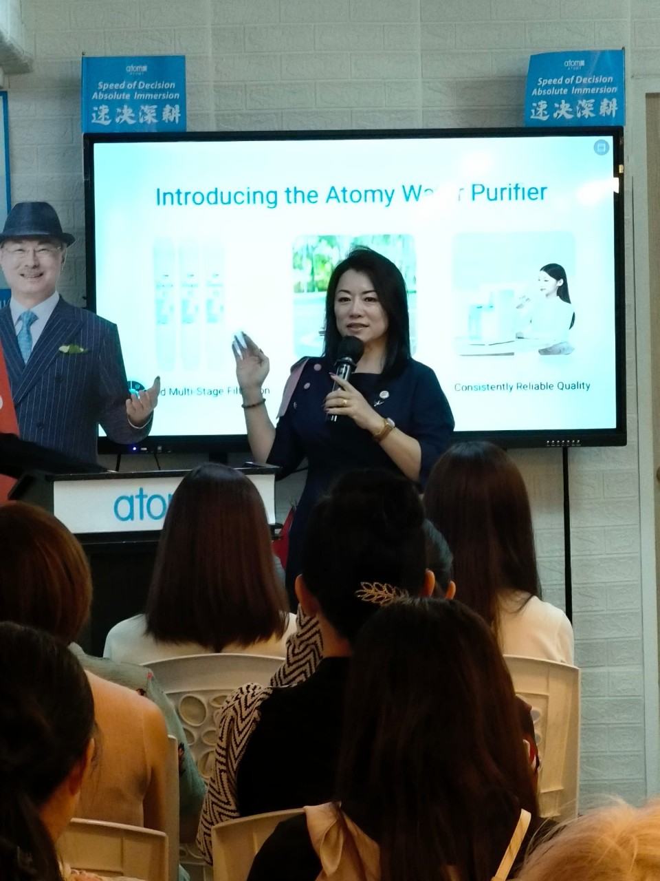 She introduced the Atomy Countertop Instant Heating RO Water Purifier, positioning it as a next-generation solution designed for modern consumers.