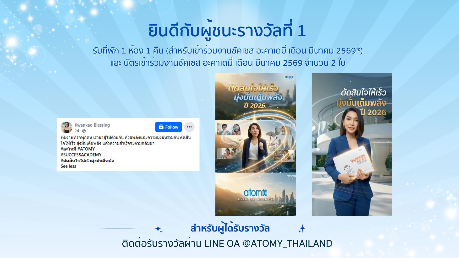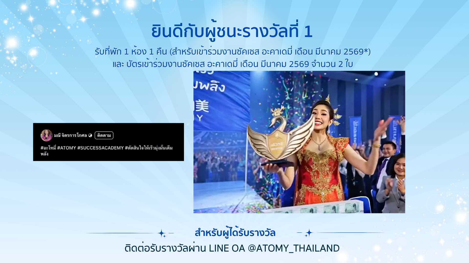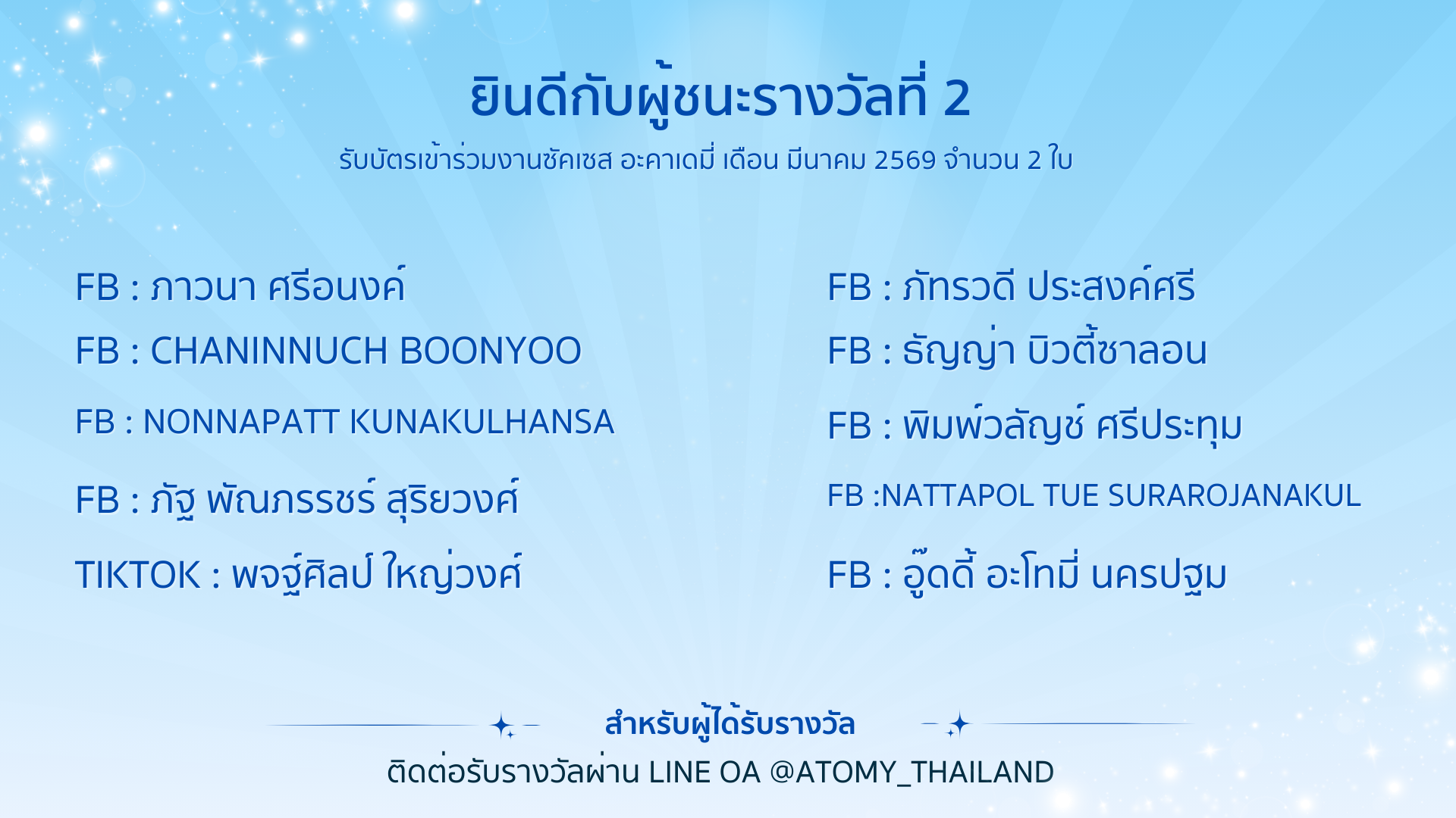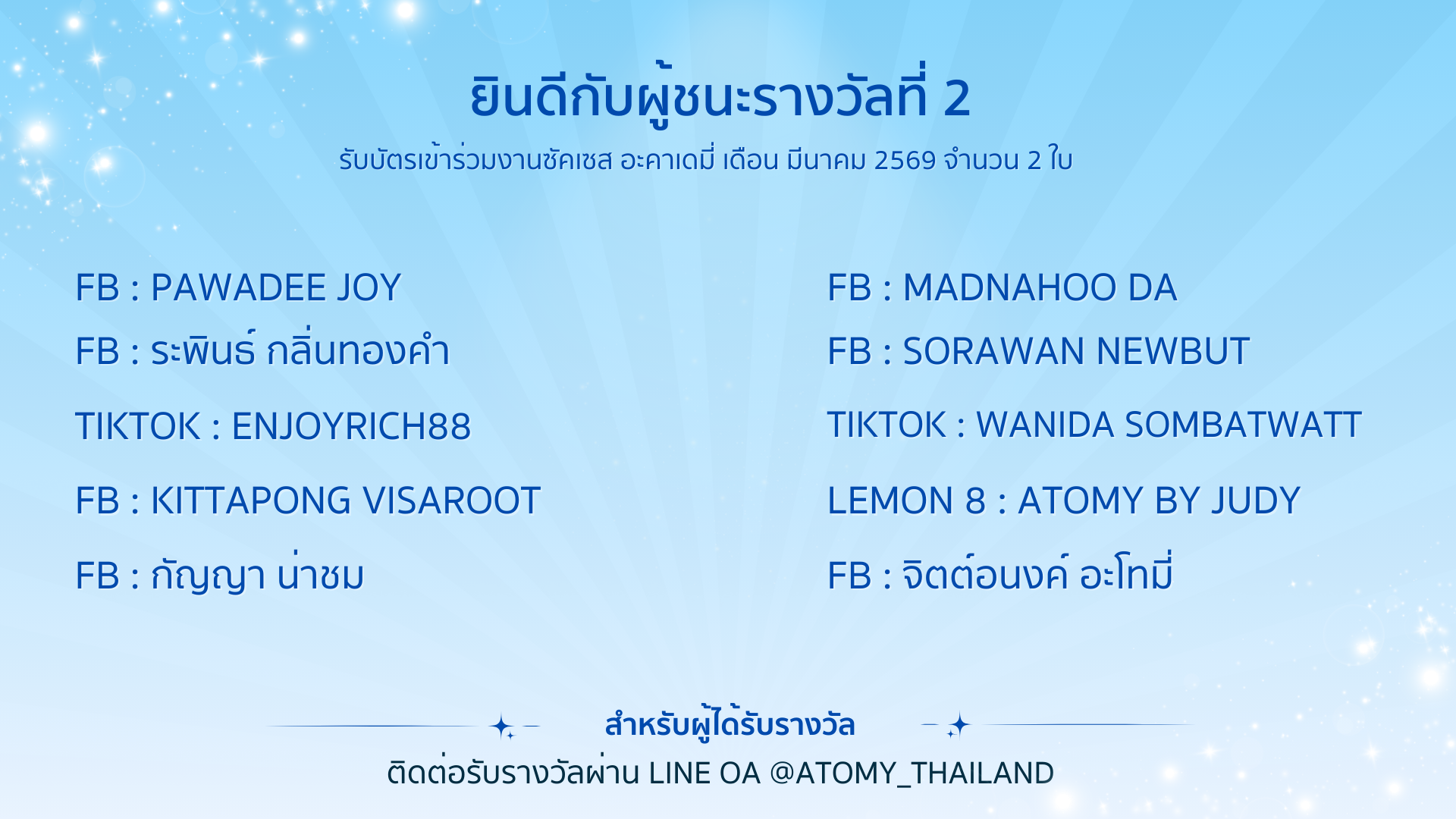 ติดต่อรับรางวัลผ่าน Line OA @atomy_thailand (มี@)