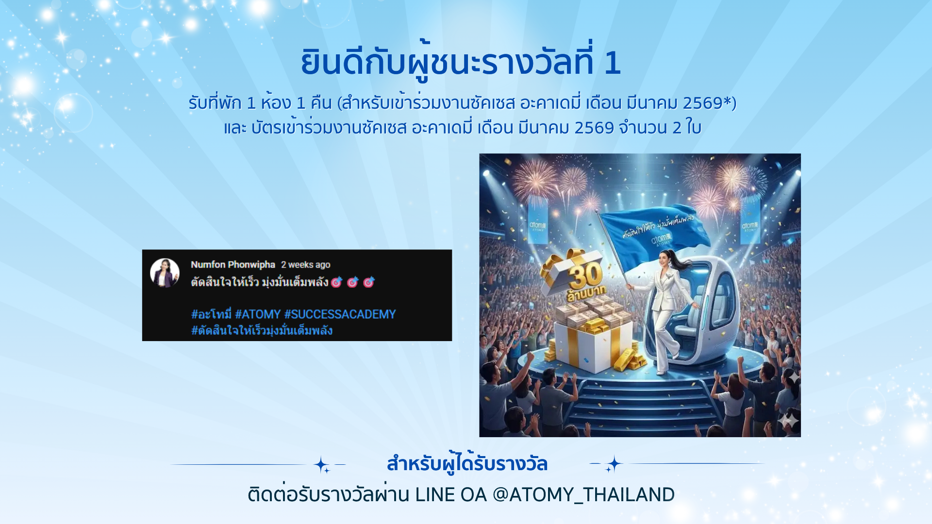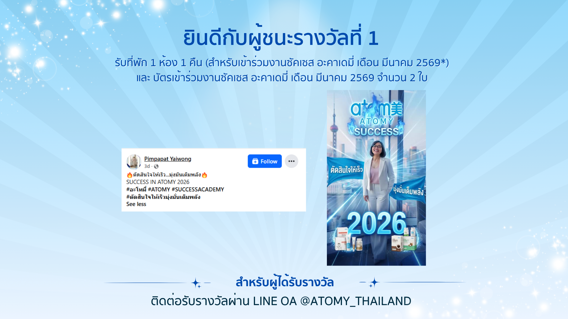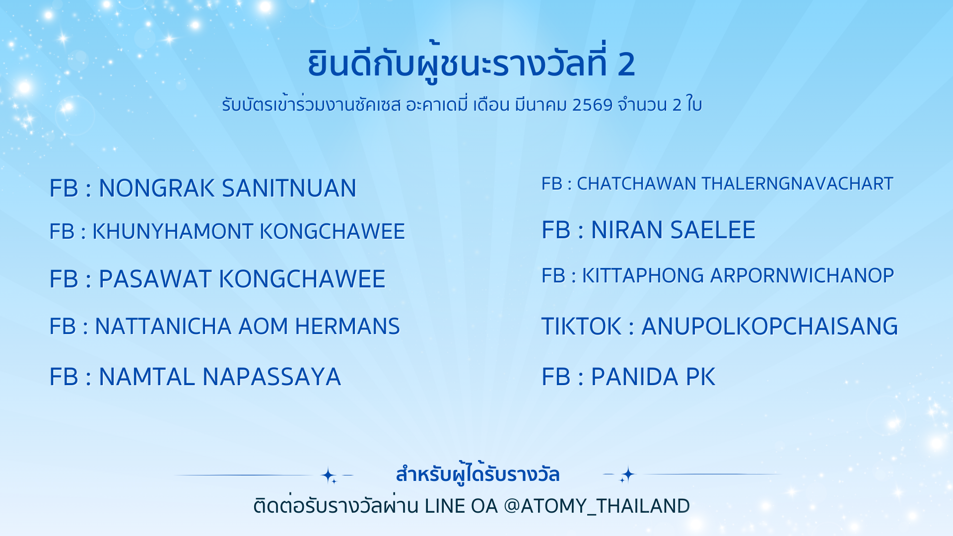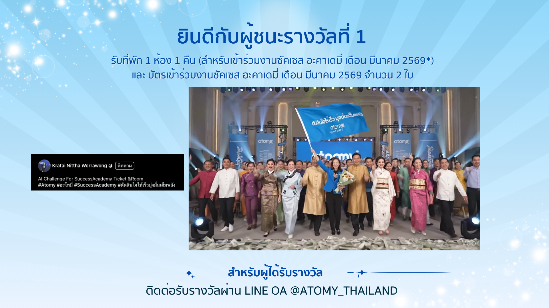 ติดต่อรับรางวัลผ่าน Line OA @atomy_thailand (มี@)