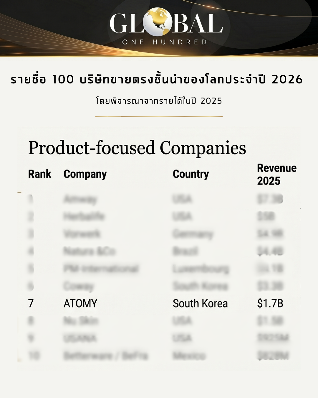 ARTICLE 100 อันดับรายชื่อขายตรงระดับโลก ปี 2026